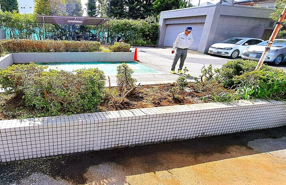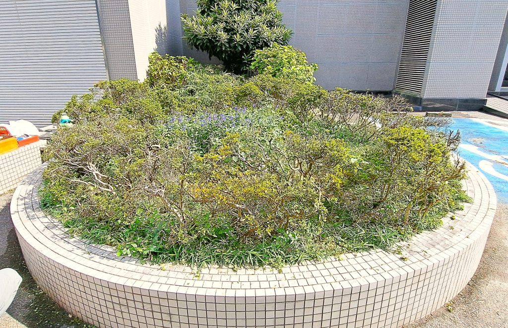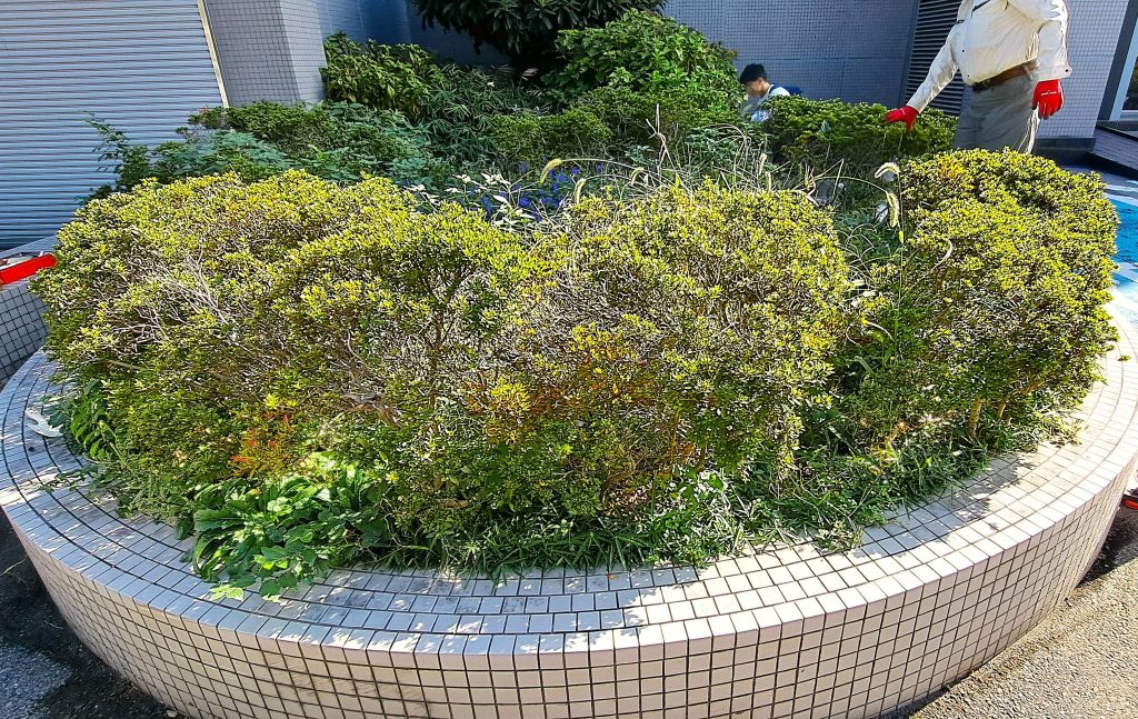間に生えた雑草を除去し、可能な限り高さを揃えて整えました。