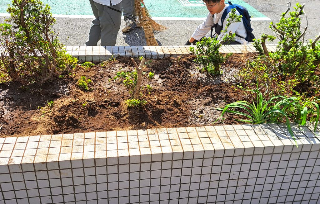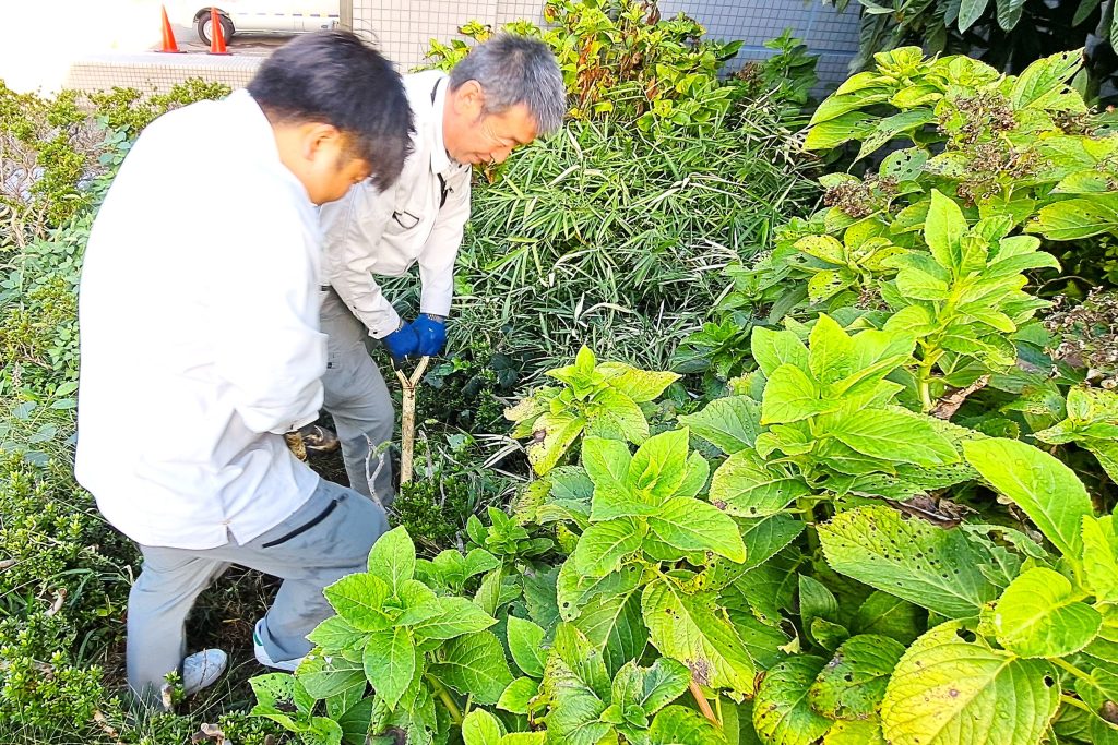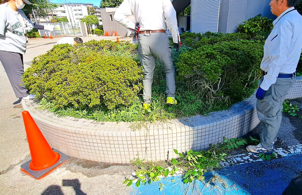 移設する低木の生えた元の場所も雑草に覆われていたので、草取りも同時進行で実施しました。