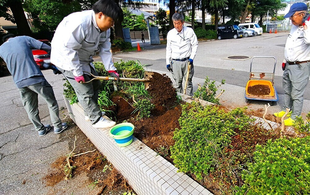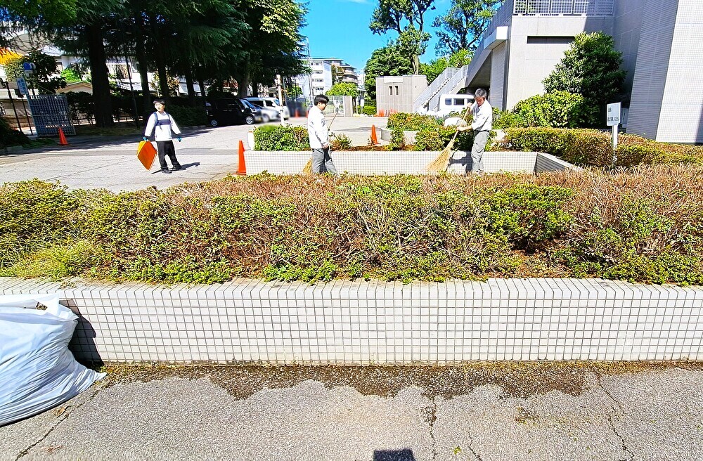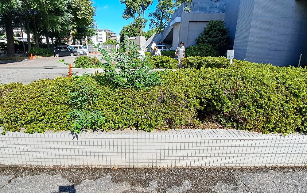 2025年10月12日、北浦和公園の 美術館裏駐車場付近にて 生垣の移植作業、および 剪定を実施しました。